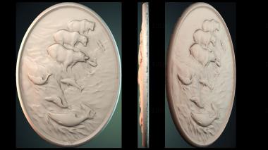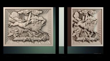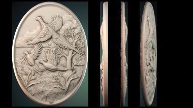3D STL MODEL FOR CNC Art pano PH_4580 Wild chicken hunting picture oval