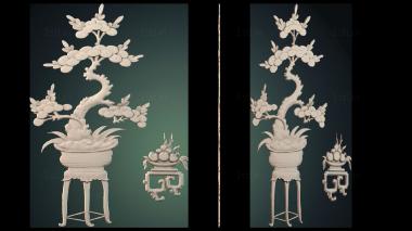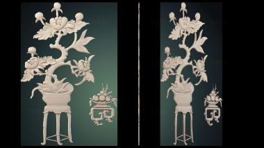 3D STL MODEL FOR CNC Art pano PH_4011 Painting of flowers and birds