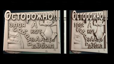 3D STL MODEL FOR CNC Art pano PH_4047 Sign caution angry dog