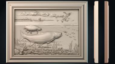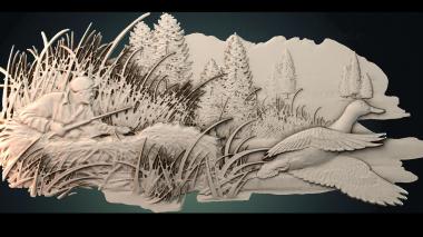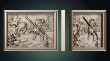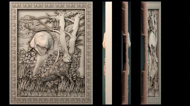 3D STL MODEL FOR CNC Art pano PH_3333 Pictures of hunting dogs and wild boar