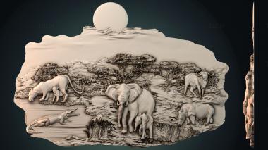 3D STL MODEL FOR CNC Art pano PH_3379 Painting of warriors and sacred fire