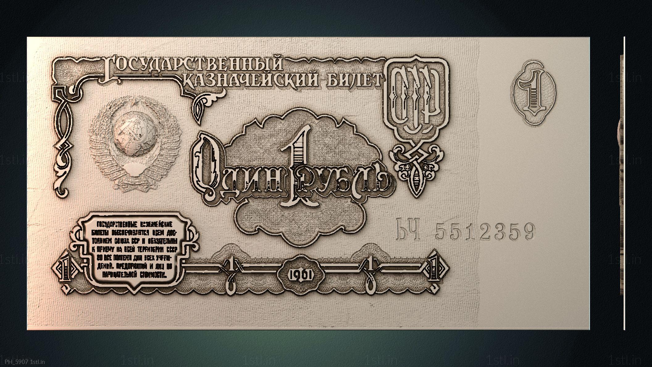 3D STL MODEL FOR CNC Art pano PH_5907 Old Russian Currency One Ruble 1961