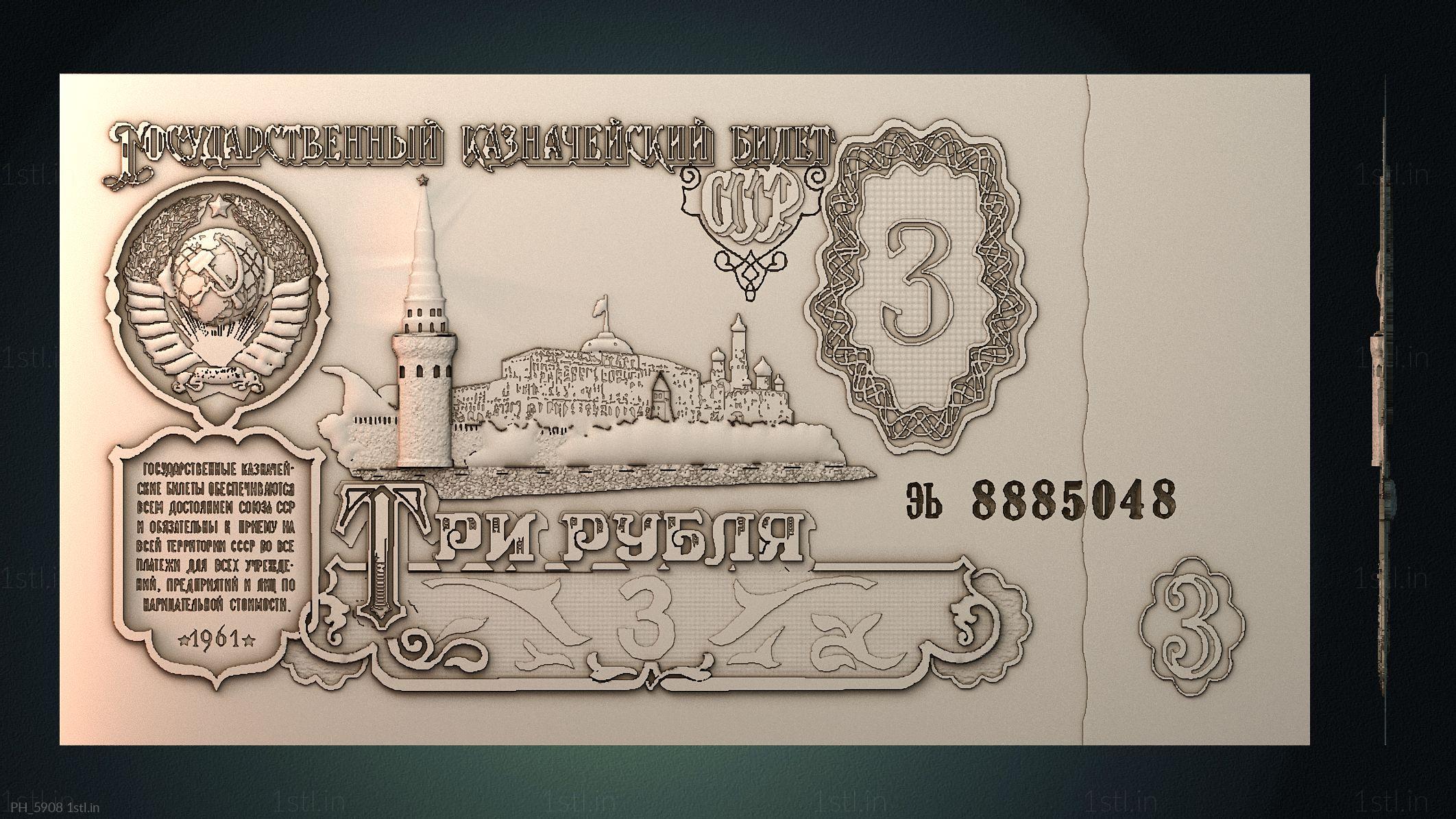 3D STL MODEL FOR CNC Art pano PH_5908 Old Russian Currency Three Ruble 1961