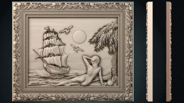 3D STL MODEL FOR CNC Art pano PH_3168 Painting of a girl on a deserted island