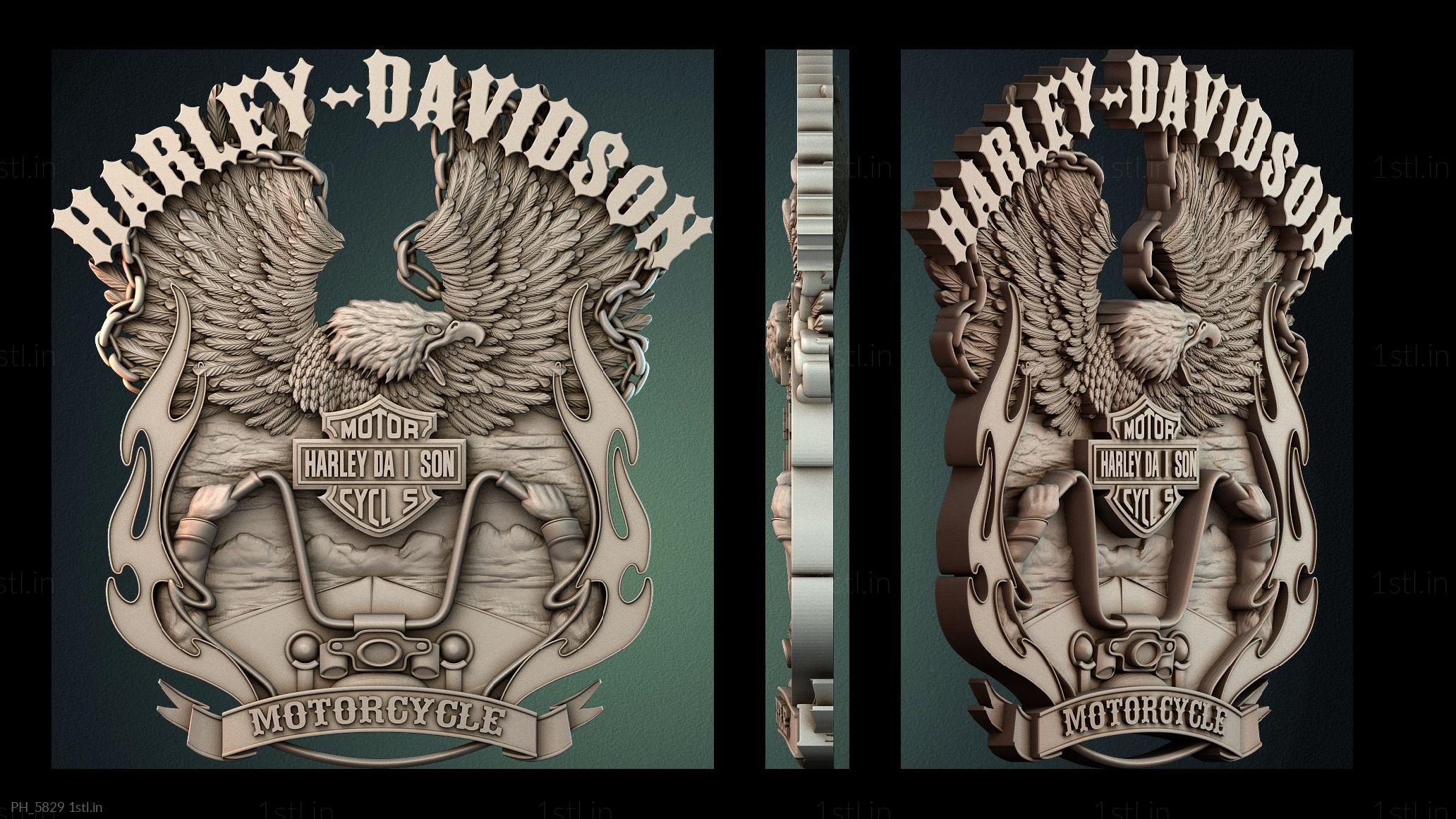 3D STL MODEL FOR CNC Art pano PH_5829 Logo Harley Davidson with eagle in front