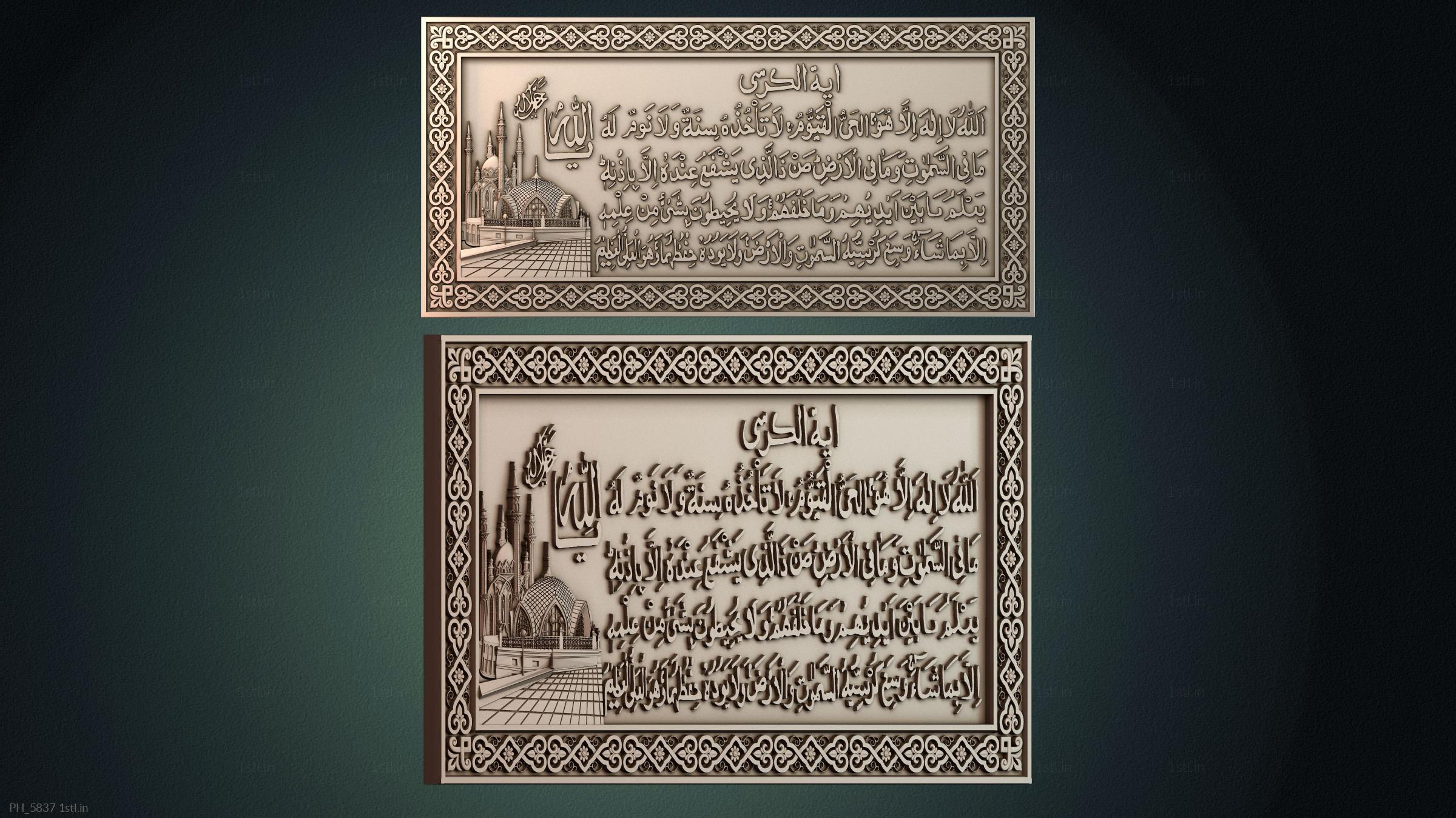 3D STL MODEL FOR CNC Art pano PH_5837 Ayat Al Kursi with a mosque