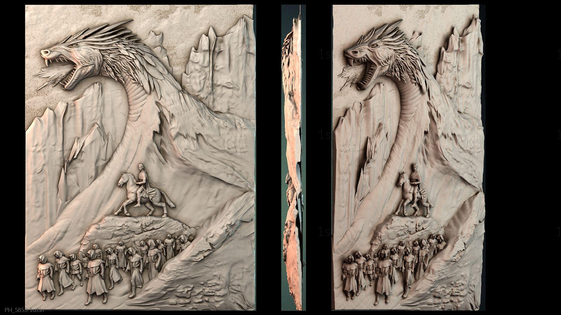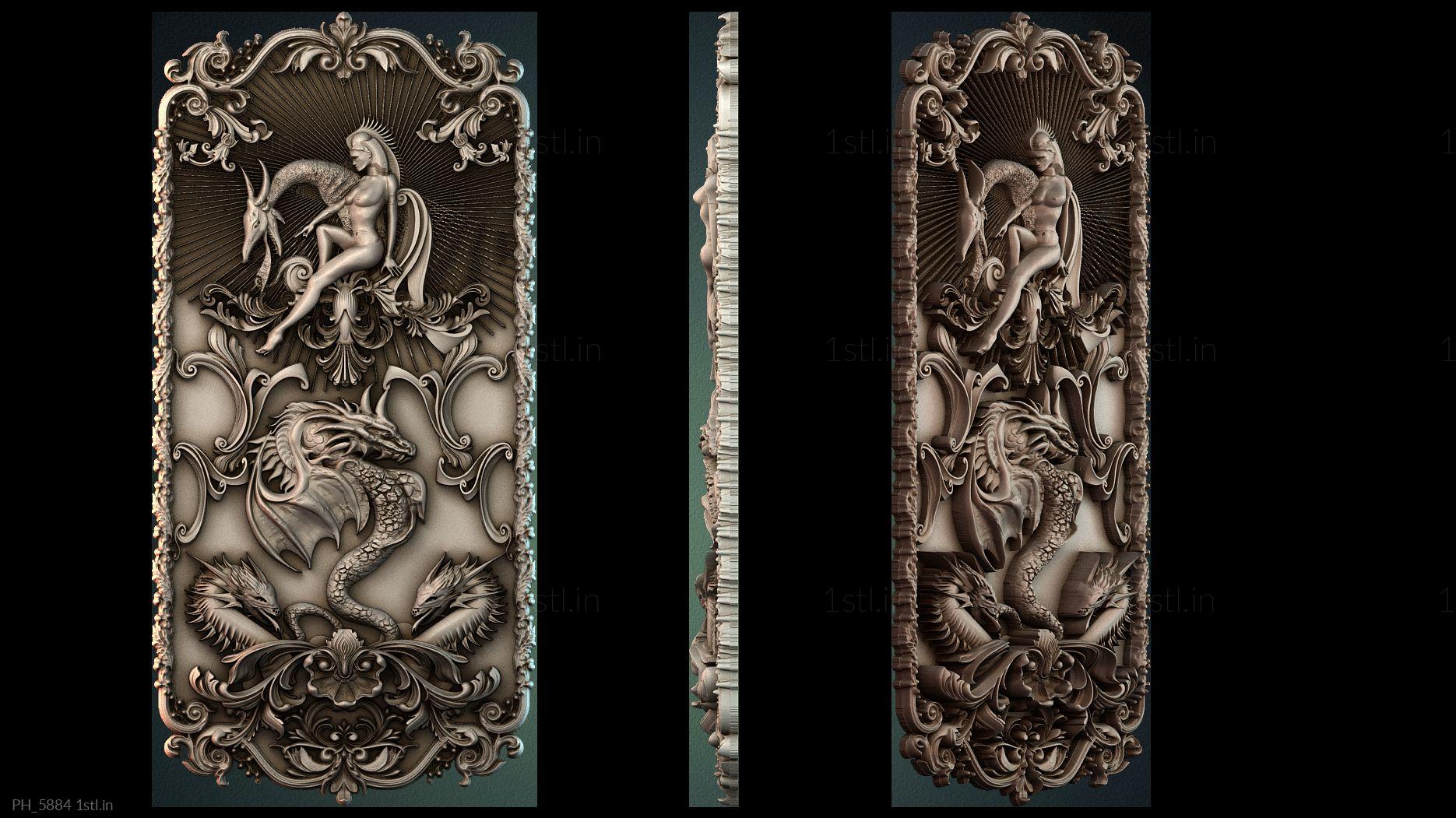 3D STL MODEL FOR CNC Art pano PH_5884 Dragon and woman decor pattern