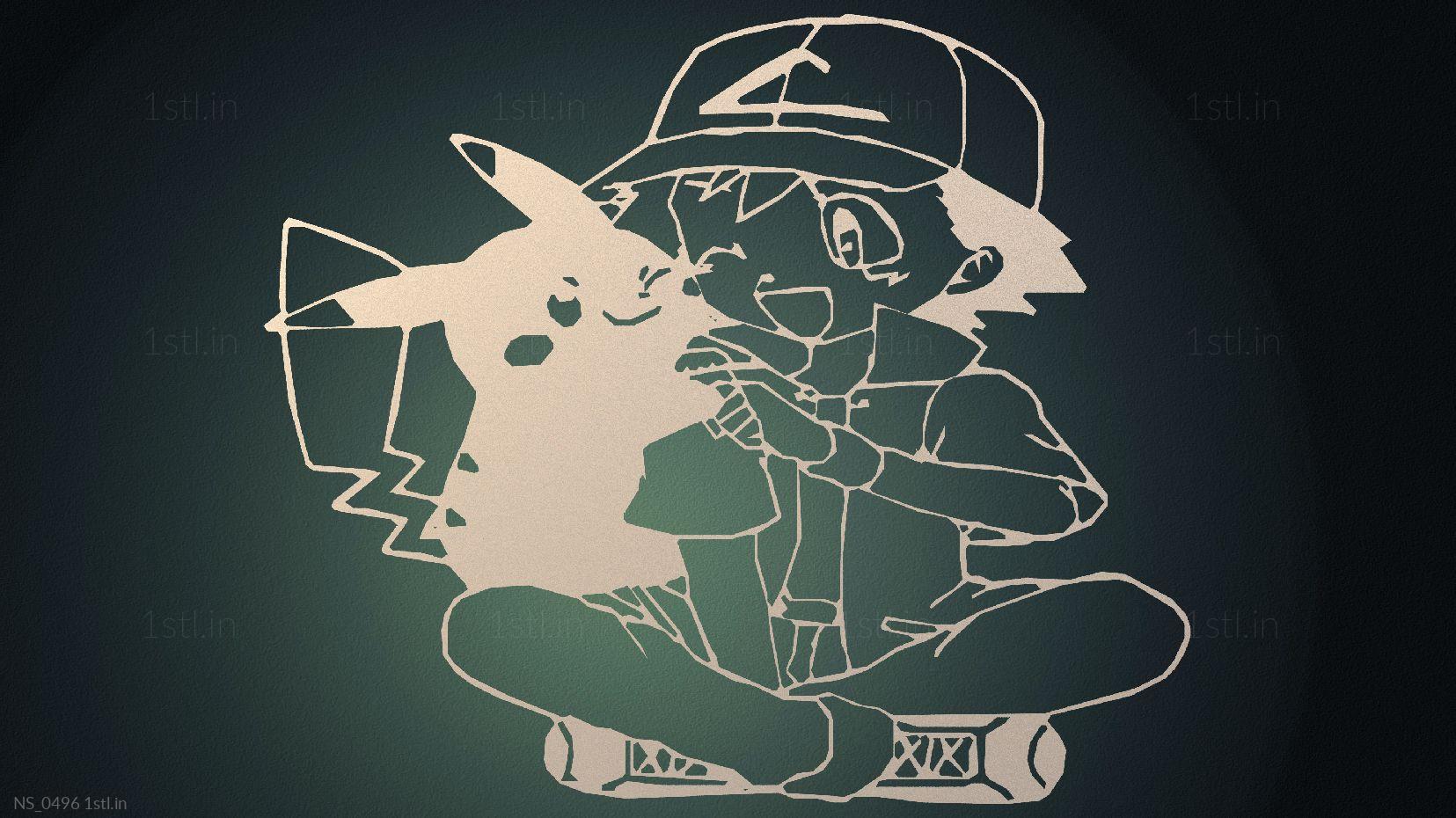 3D STL MODEL FOR CNC Different NS_0496 Ashe and Pikachu Wall Decor Gravure Sacha