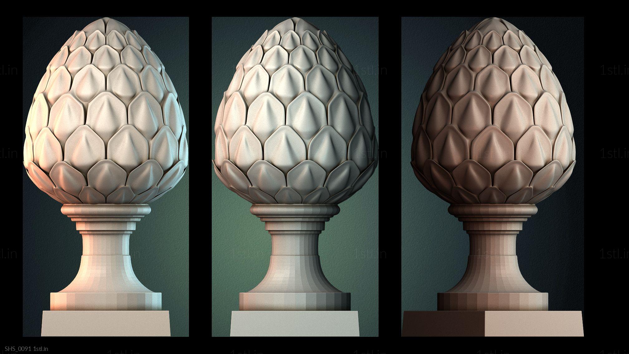 3D STL MODEL FOR CNC Finial SHS_0022 3d stl model of round decor, cones/pommels for a post