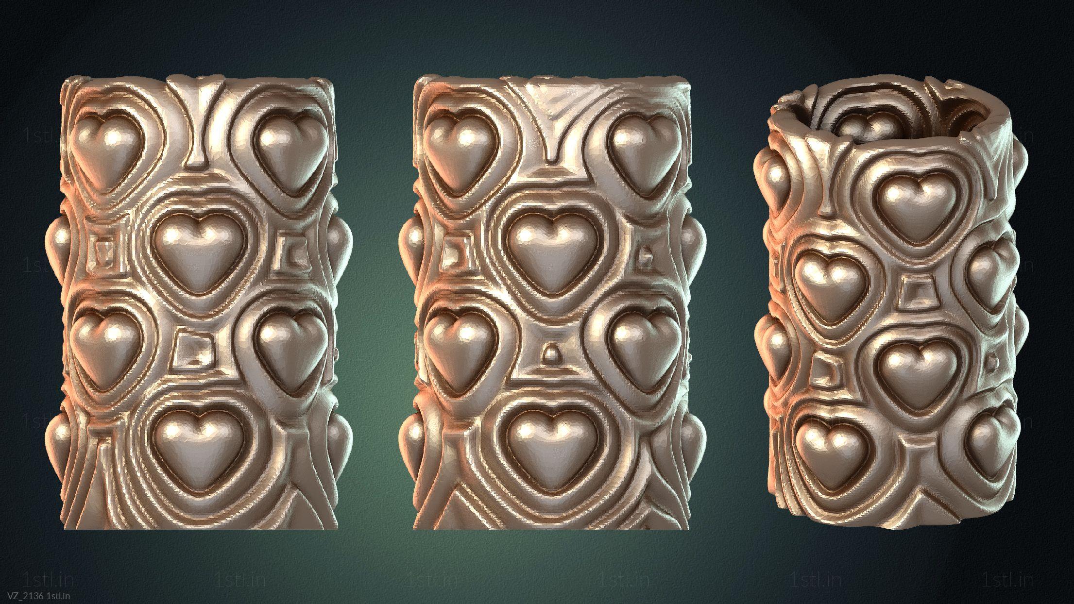 3D STL MODEL FOR CNC Vases VZ_2134 Heart Vase Pattern